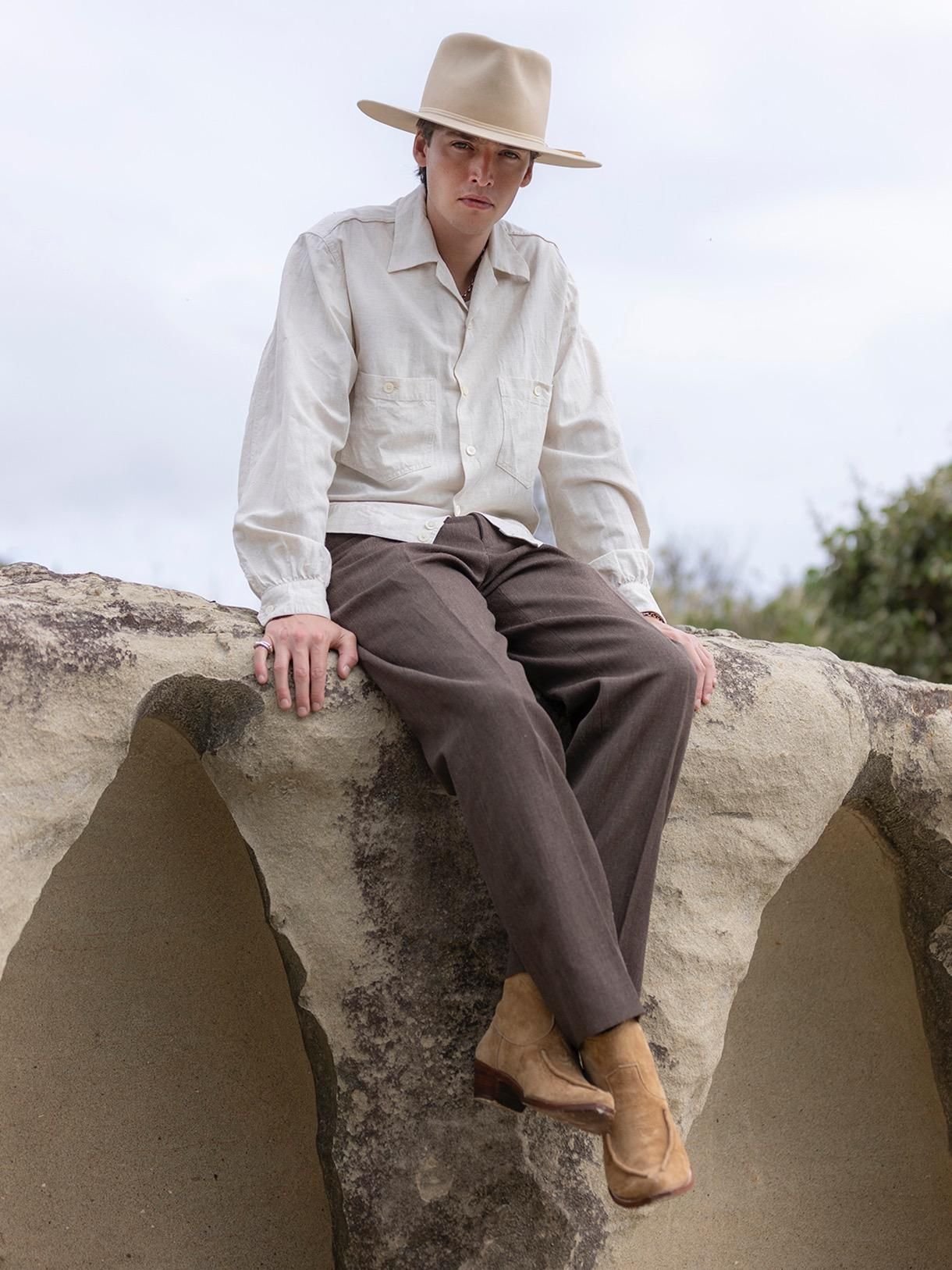 #0028 WESTERN STRAIGHT TROUSERS -WOOL LINEN TWEED- BLACK