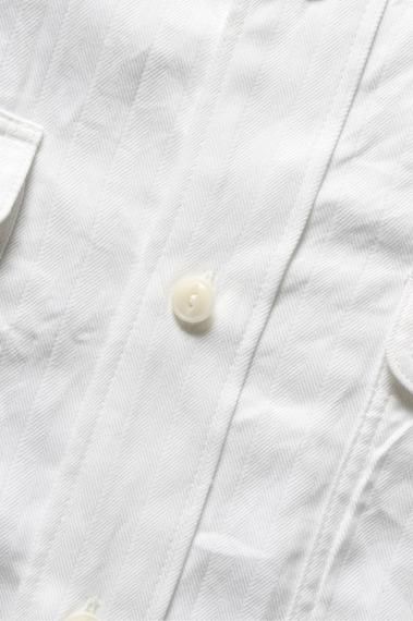 ドビーヘリンボーンコットンのワークシャツ。 オーセンティックな2ポケットタイプで、ゆったりとしたシルエット。 素材はドレスシャツなどに使われるドビー織のヘリンボーンを塩縮ワッシャーし、ふっくらとした風合いに仕上げ、更に製品ワッシャタンブラーもかけヴィンテージの様な仕上がりにしている。※商品の詳細や在庫状況、お取り寄せなどは、店頭までお問い合わせ下さい。