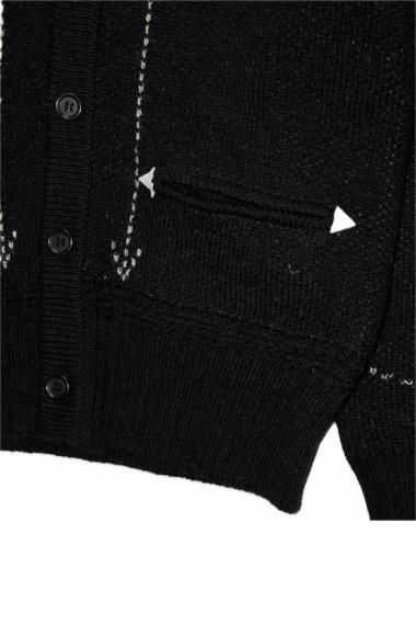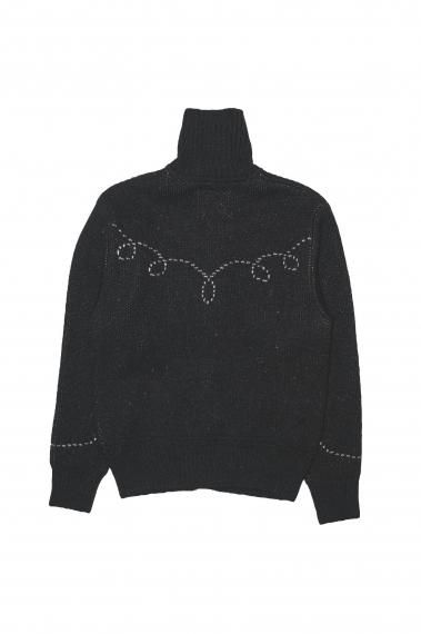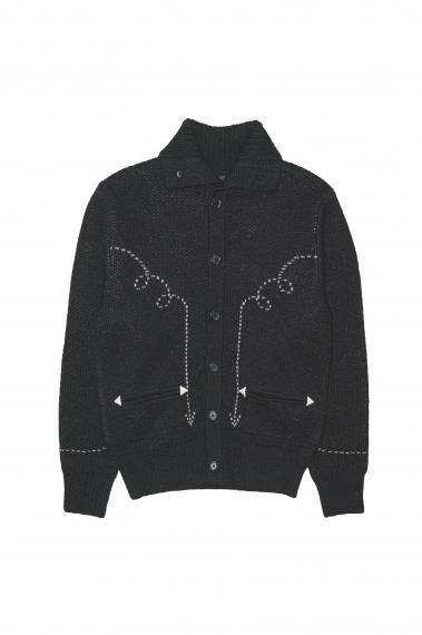 シェットランドウールリネンのタートルカーディガンニット。 フロントとバックに施したウエスタン調の柄が特徴的な、タートルカーディガンニット。 フロントポケットのサイドにはレザーをあしらい、上質感をプラス。 タートルネックとしてはもちろん、ボタンを開けて襟付きカーディガンのように着用することも可能です。 ショート丈でタイトなシルエットながら、ニット特有の伸縮性により快適な着心地を実現。 袖口のリブは長め、着丈はやや短めにし、独特なバランスを生み出しています。 さらに袖や裾の一部には矢振り柄の切り替え、アーム部分には単色ながらも際立つ編み柄を採用したディテールにこだわった一枚。 素材はシェットランドウールにリネンを混紡した糸で編み上げ、リネン特有のドライな質感と、シェットランドウールの素朴で柔らかな風合いがマッチした、個性豊かなニットとなります。※商品の詳細や在庫状況、お取り寄せなどは、店頭までお問い合わせ下さい。