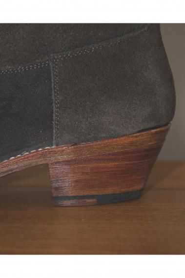 モカシンの要素を取り入れた、ウエスタンディテールのブーツ。 ミッドカット丈で、履き口にはピンキングカットを施したパイピングがアクセント。 クラシックなムードの中に、上品さを感じるデザインです。 ソールはグッドイヤー製法によりオールソール交換が可能で、長く愛用できる一足。 アッパーには、英国の名門タンナー〈Charles F. Stead(チャールズFステッド)〉社によるクードゥーレザーを使用。 南アフリカ産の天然アンテロープレザーをクローム鞣しとワックス加工で仕上げたもので、牛革の強さとモカシンレザーのしなやかさを兼ね備えています。 肉厚ながら柔らかく、履くほどに風合いが増すスウェード面が特徴です。 上質な素材と確かな製法が生み出す、タフで品のあるブーツです。※商品の詳細や在庫状況、お取り寄せなどは、店頭までお問い合わせ下さい。