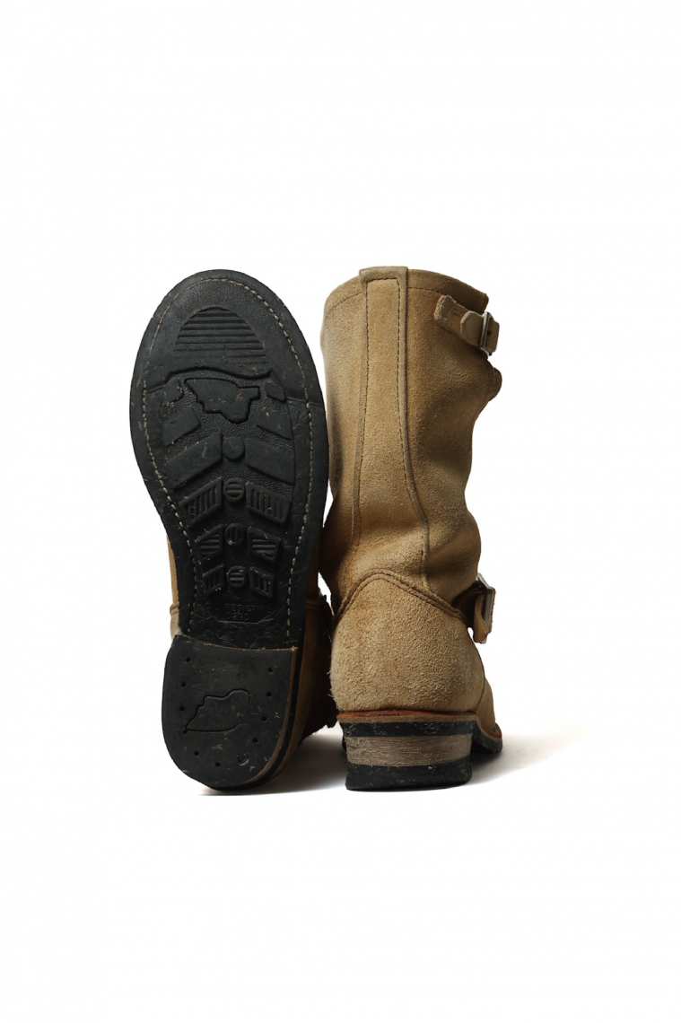 数多くあるワークブーツの中で、Coyote uglyが惚れ込んでいる「RED WING」。その中でも、ヴィンテージと呼ばれるエンジニアブーツ、PT企画の時代の物や、アイリッシュセッターの犬タグモデルのブーツを中心に世界各地から集め続けている。年間を通して、ブーツをミックスさせたスタイリングを提案する当店のスタイルには欠かせない存在。ヴィンテージならではのレザーの質感や、現行モデルとは異なるディテールを持った、レッドウイングを幅広く展開する。