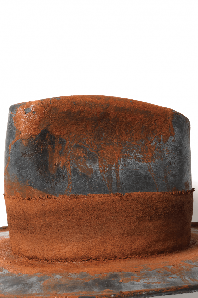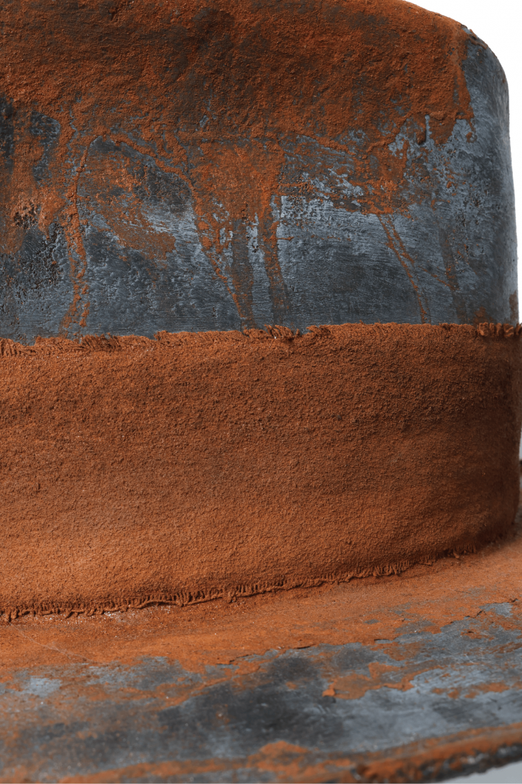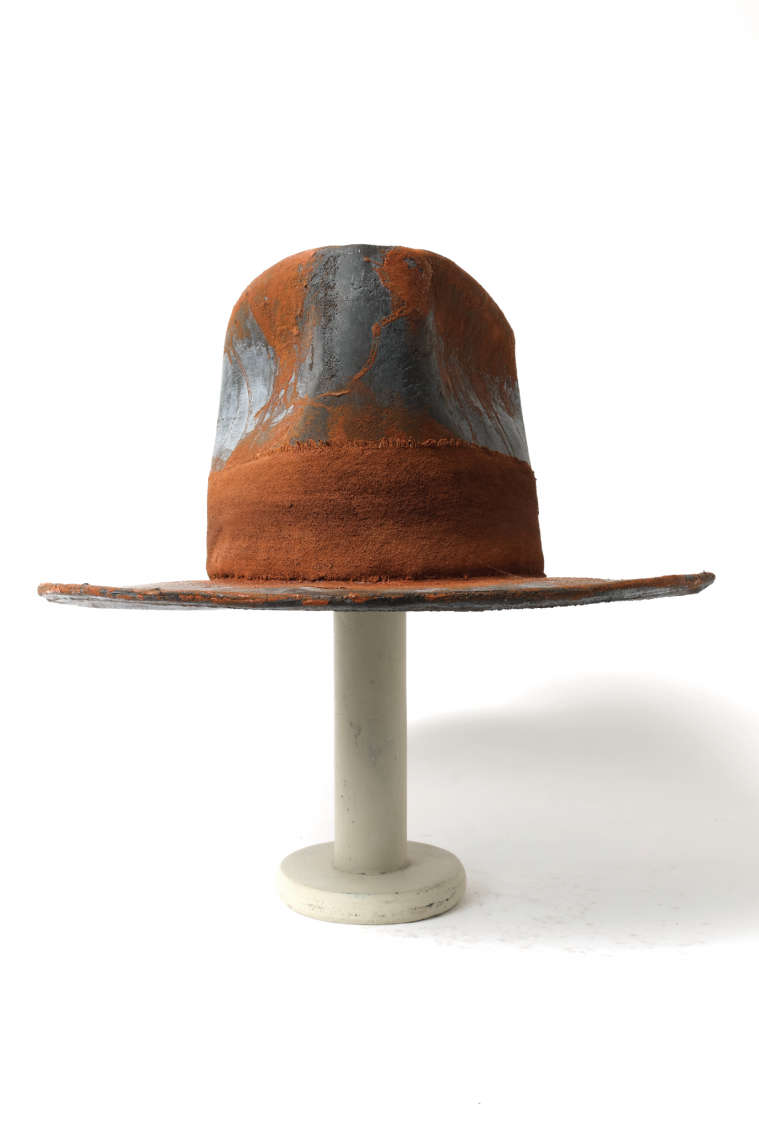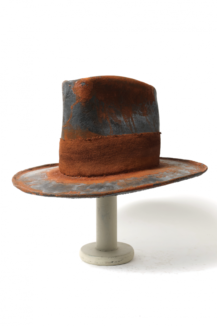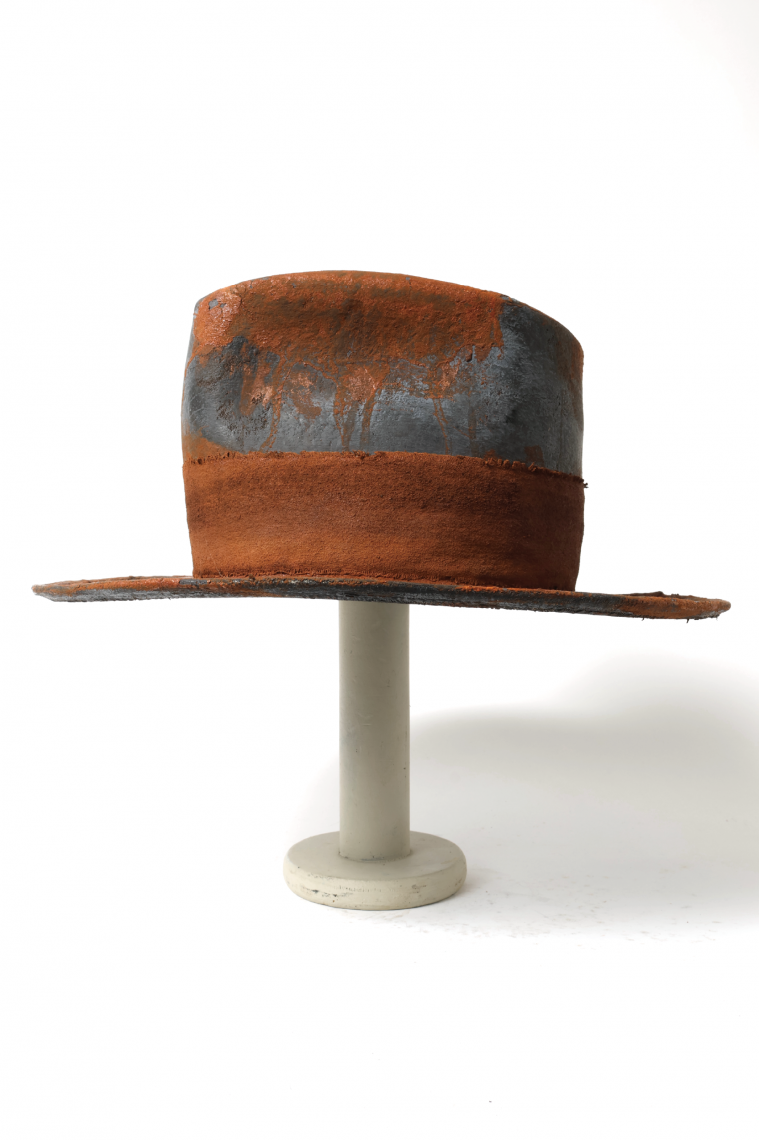 錆加工を施したフェルトハットです。※商品の詳細やオーダーをご希望の方は、店頭までお問い合わせ下さい。